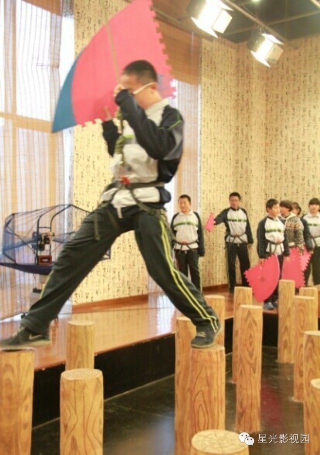 学生们体验拓展活动—【穿越梅花桩】,锻炼勇气协调能力。